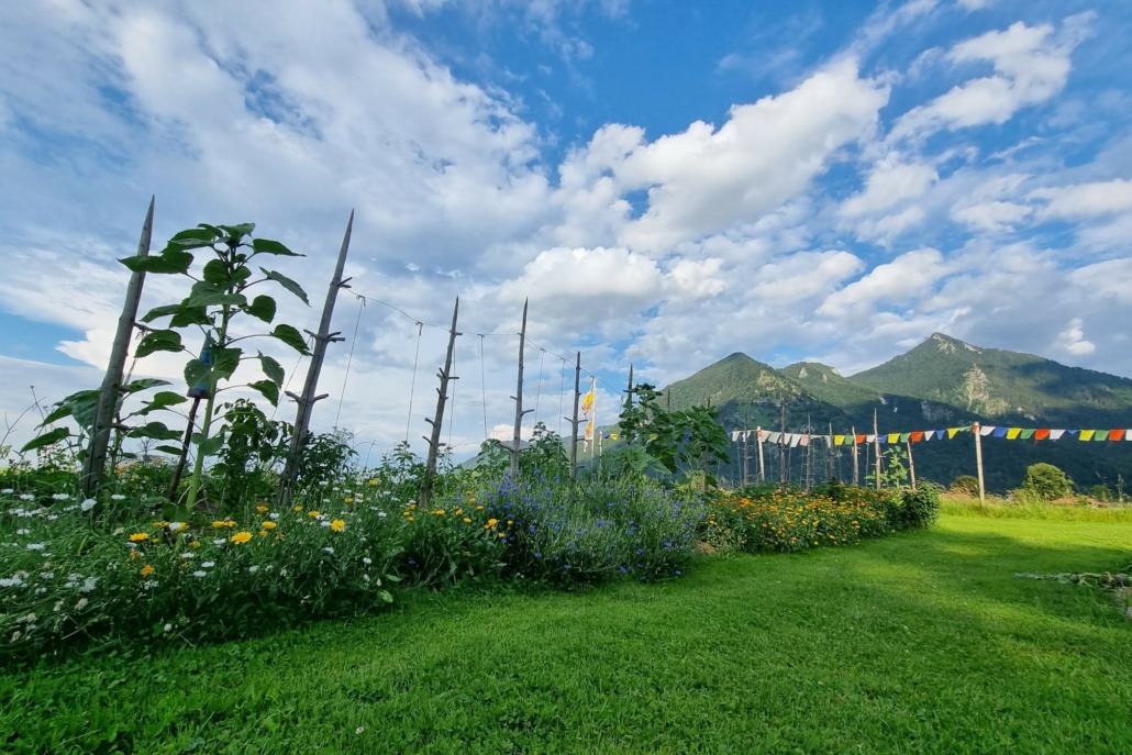 Treffpunkt: Permagarten Marquartstein-Piesenhausen, Grassauer Straße (wo die tibetischen Gebetsfahnen hängen)